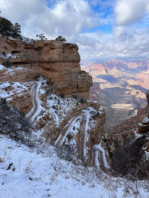 I spent 6 days on a frontcountry camping trip to the Grand Canyon with People of Color Outdoors (POCO). It was a grand time with new friends! And so so stunning. It snowed the last few days we were here.